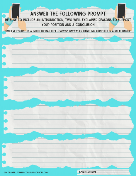 - If you wanted to include a bonus question, you could provide this to students when they turn in their essay. There are two essay templates provided below; one with a bonus section and one without. The bonus question is…What famous person helped popularize the term “fexting” in the last couple of years? (Note: most of the articles I read in preparing this lesson, give reference to this person…FLOTUS.)